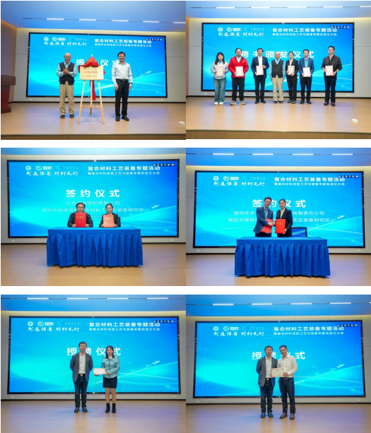 对接环节,江苏天鸟高新、恒神股份、亿维特航空科技等多家材料领域领军企业现场发布了技术需求。随后,南航无锡研究院、连云港鹰游纺机、诺尔泰设备等装备企业则带来了铺丝、预浸料、拉挤等前沿工艺装备解决方案,现场交流气氛热烈。活动还举行了合作签约仪式,标志着多项合作意向的达成与创新资源的进一步整合。
